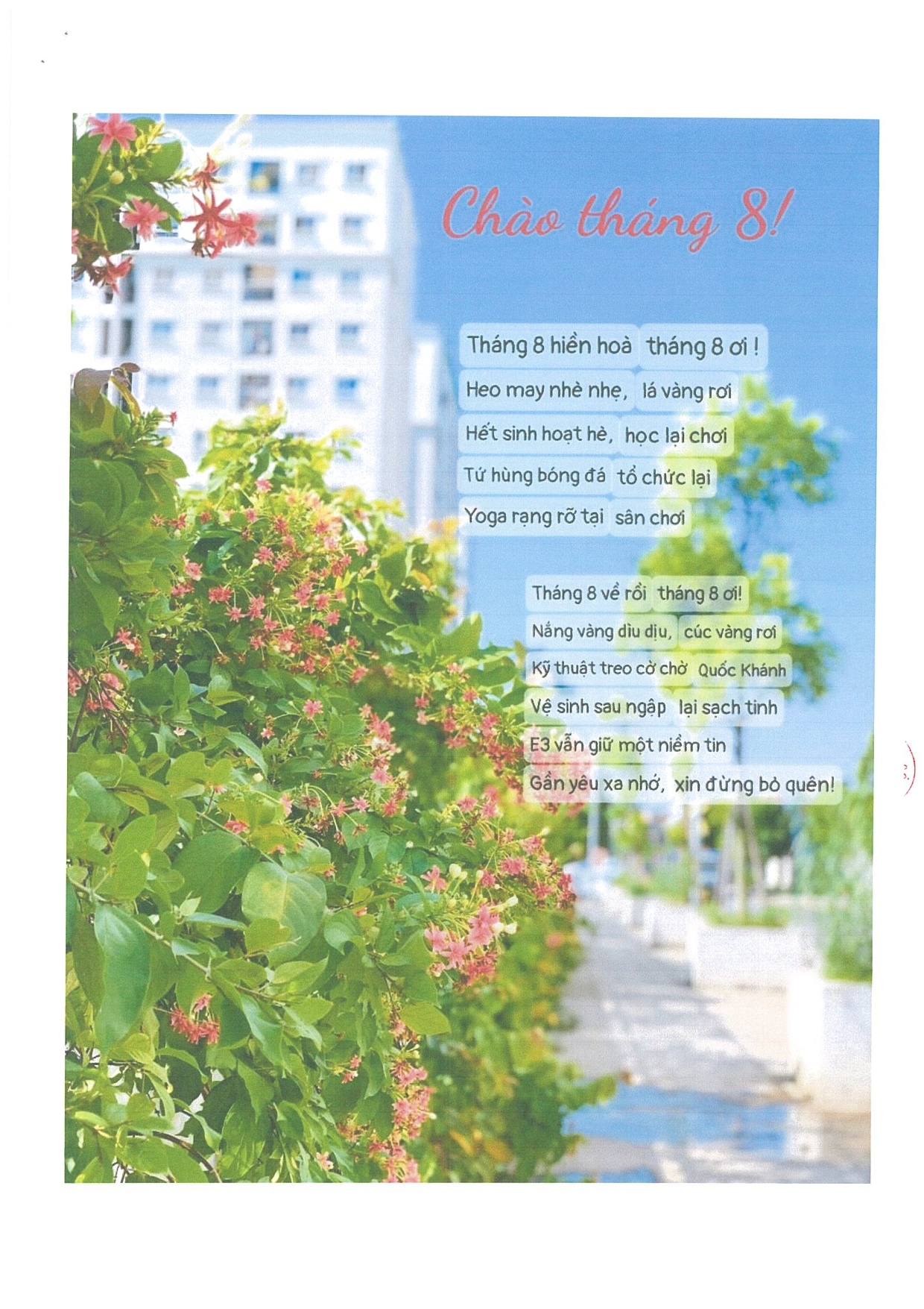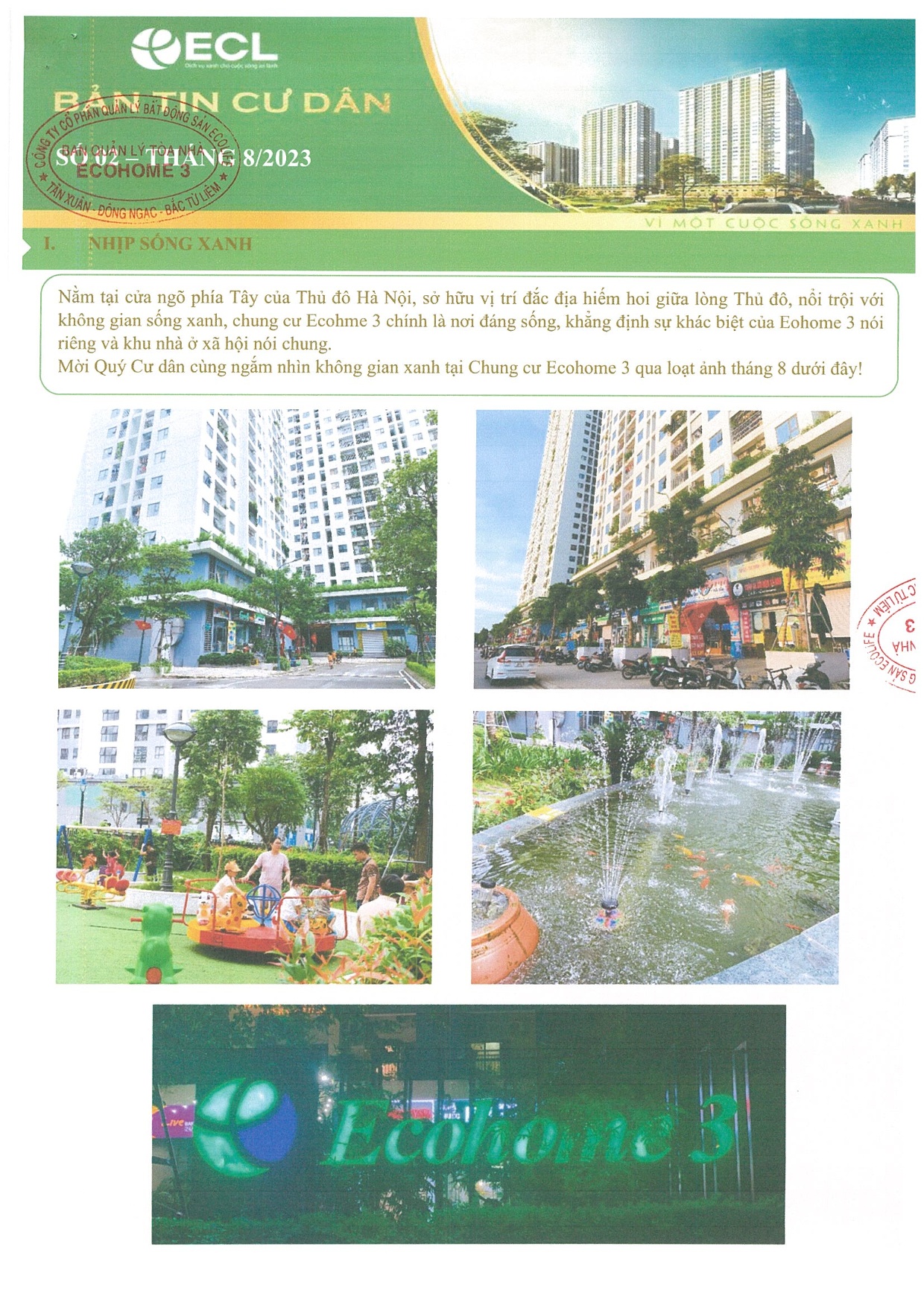 BQL kính gửi Quý cư dân, quý khách hàng Bản tin Cư dân số 02 Tháng 8.2023!