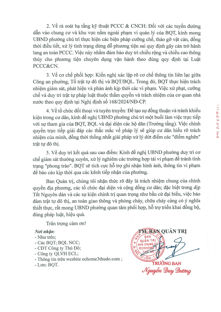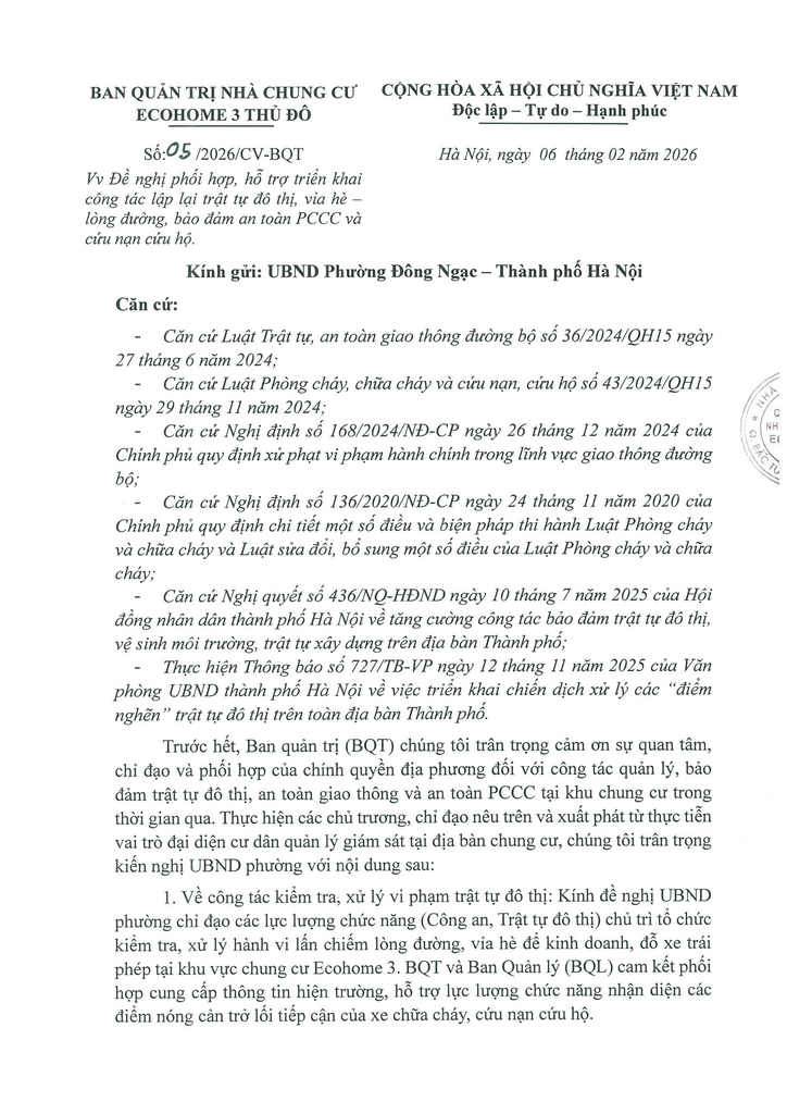 Công văn Đề nghị phối hợp, hỗ trợ triển khai công tác lập lại trật tự đô thị, vỉa hè – lòng đường, bảo đảm an toàn PCCC và cứu nạn cứu hộ 06/02/2026 BQT 0 Nhận xét