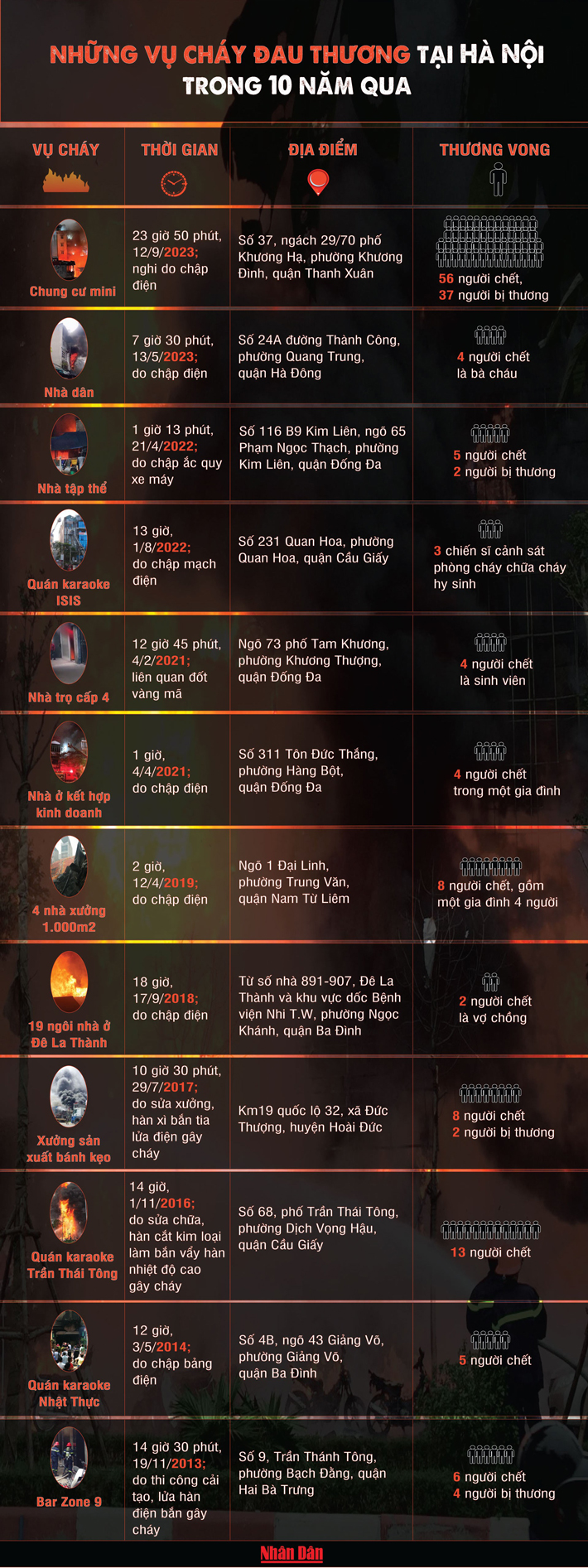 [Infographic] Những vụ cháy đau thương tại Hà Nội trong 10 năm qua