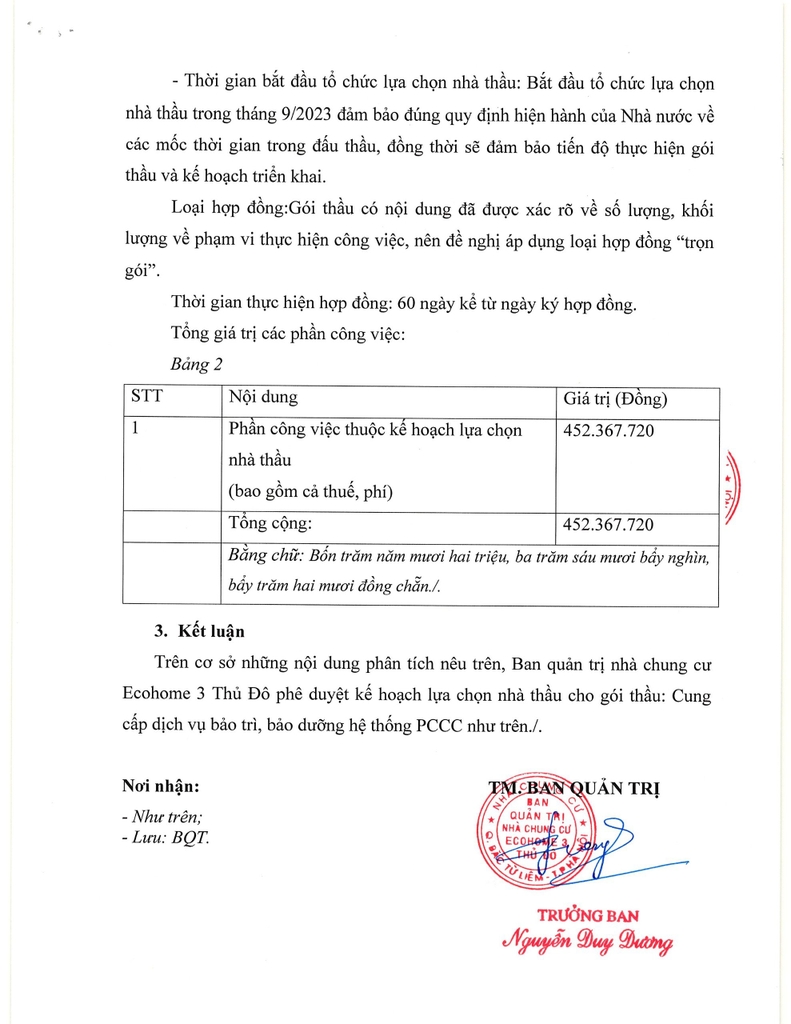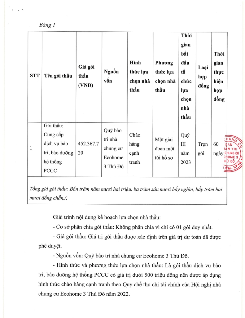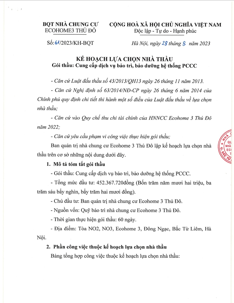 Kế hoạch lựa chọn nhà thầu gói thầu: Cung cấp dịch vụ bảo trì, bảo dưỡng hệ thống PCCC (Lần 2) 17/10/2023 BQT 0 Nhận xét