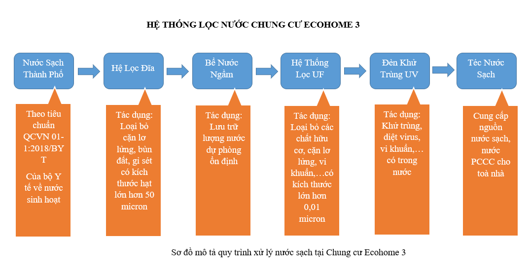 Về cơ bản quy trình của hệ thống lọc nước hiện có tại đang được sử dụng tại chung cư Ecohome 3 đạt được các tiêu chuẩn của Bộ Y tế về nước sạch sinh hoạt. Tuy nhiên vẫn còn một số nhược điểm mà hệ thống lọc nước chưa xử lý triệt để được và có thể gây ảnh hưởng tới sinh hoạt hàng ngày và sức khoẻ của cư dân như: