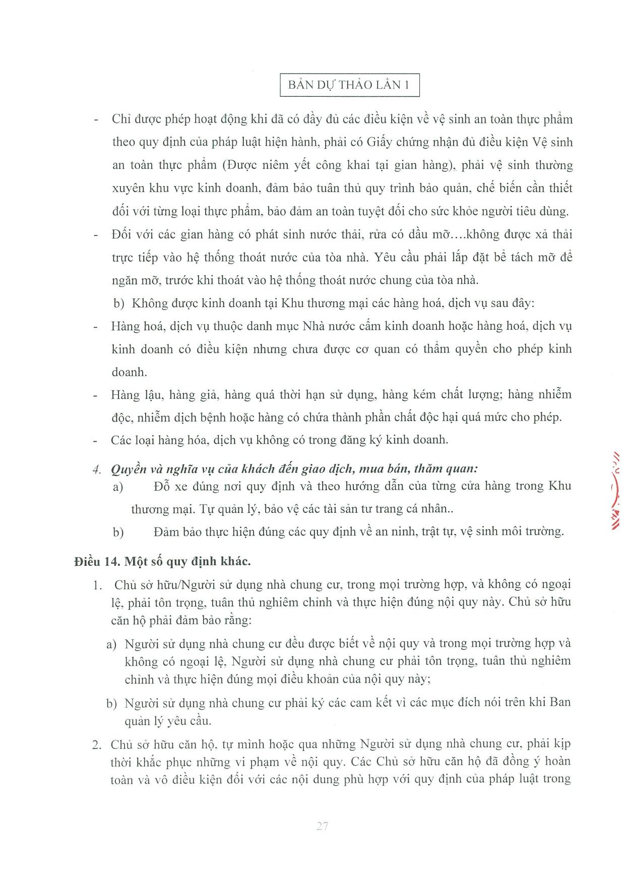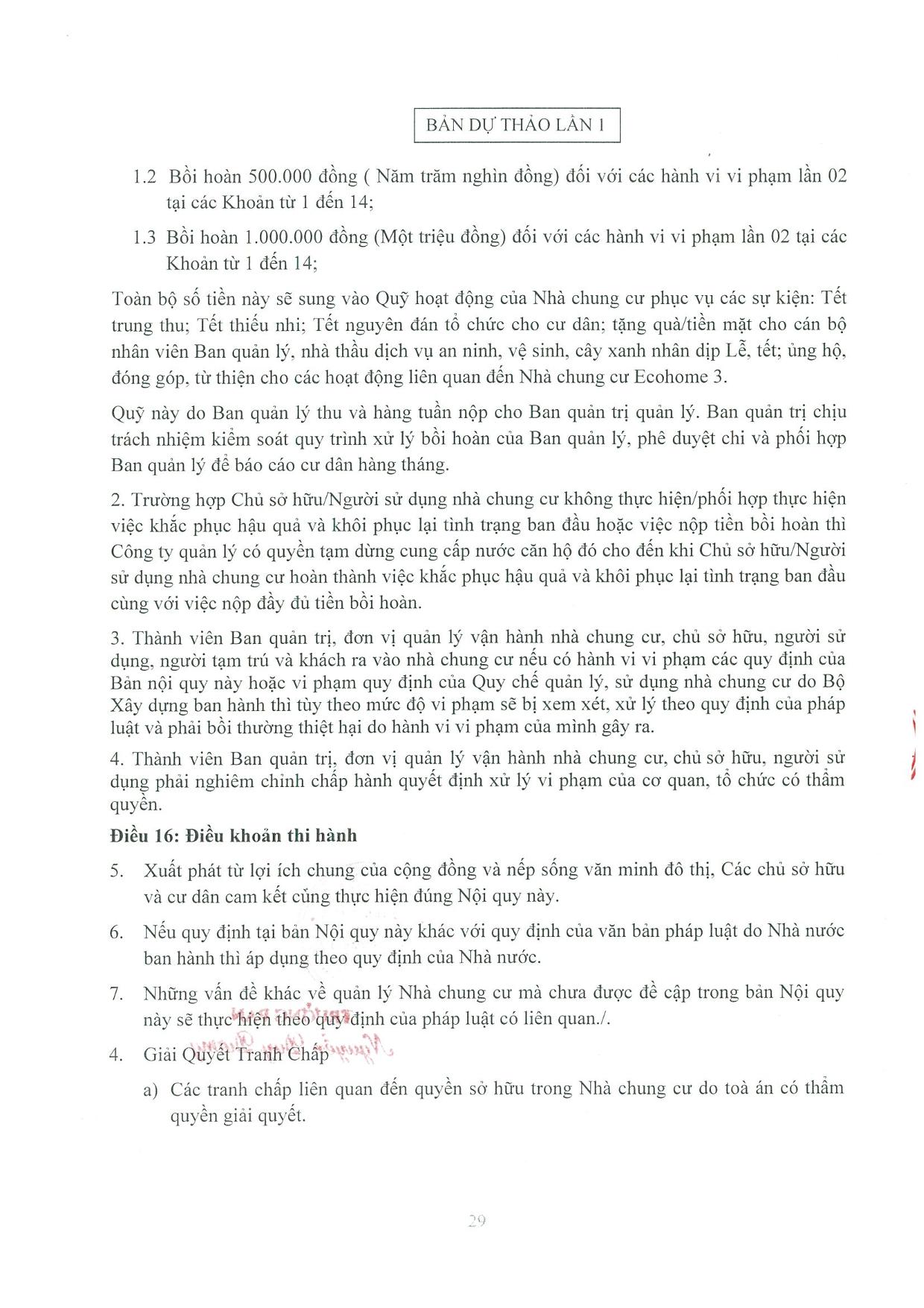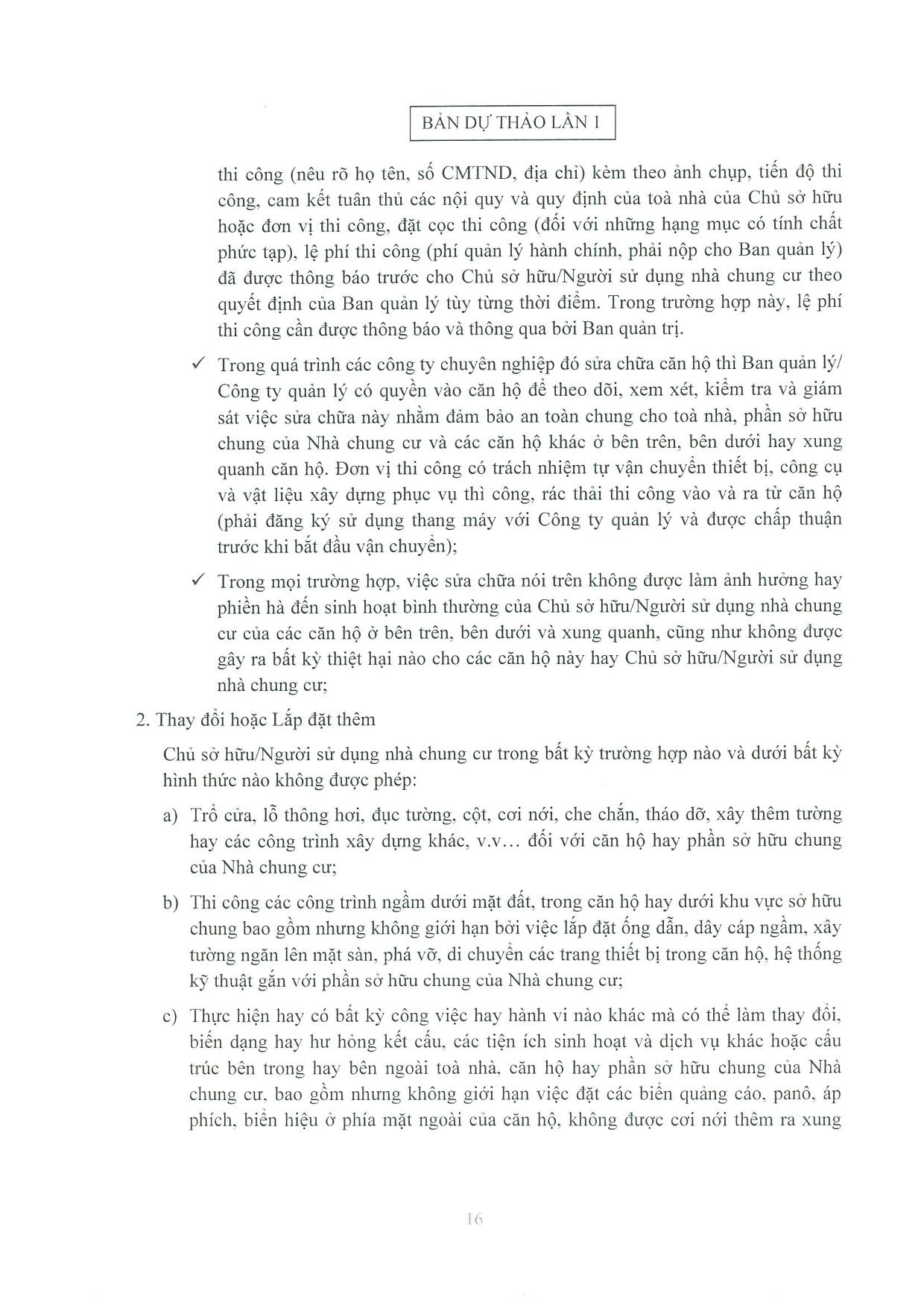 LẤY Ý KIẾN DỰ THẢO NỘI QUY QUẢN LÝ - SỬ DỤNG NHÀ CHUNG CƯ