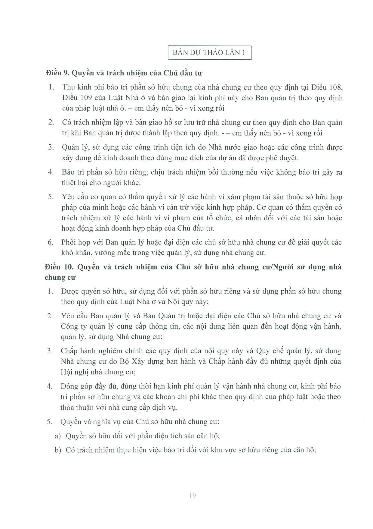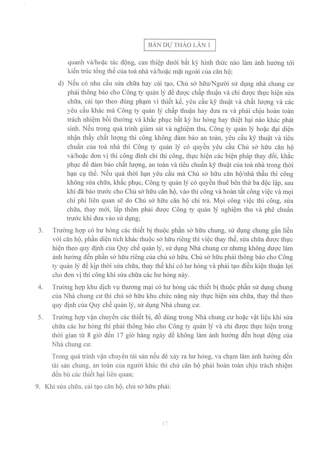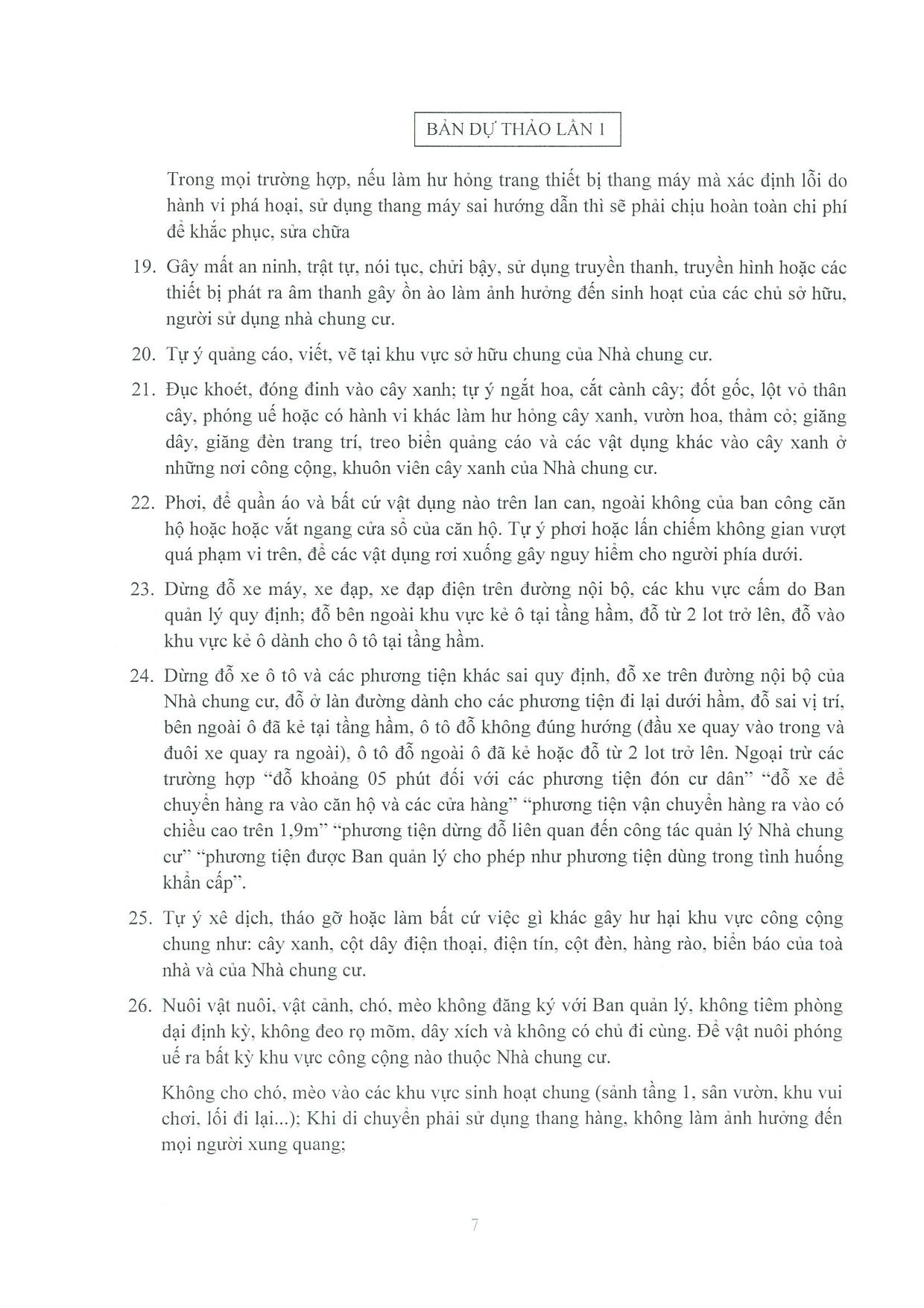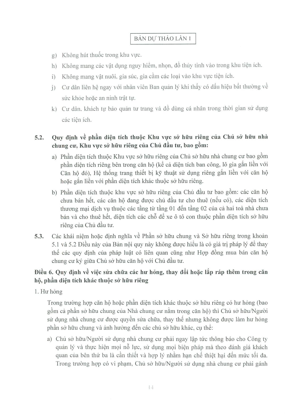 LẤY Ý KIẾN DỰ THẢO NỘI QUY QUẢN LÝ - SỬ DỤNG NHÀ CHUNG CƯ