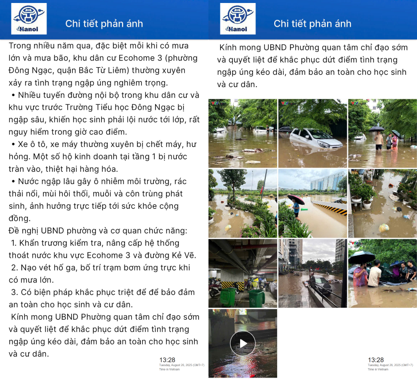 Cư dân cho biết tình trạng “cứ mưa là ngập” đã kéo dài nhiều năm, gây thiệt hại tài sản và nguy hiểm cho việc đi lại, đặc biệt với trẻ nhỏ. Đây không phải lần đầu cư dân Ecohome 3 chịu cảnh ngập úng. Suốt nhiều năm qua, mỗi mùa mưa bão, điệp khúc “cứ mưa là ngập” lại tái diễn và Cư dân rất mong chính quyền địa phương sớm có giải pháp căn cơ, cải tạo hệ thống thoát nước, tránh lặp lại cảnh ngập úng mỗi mùa mưa bão.