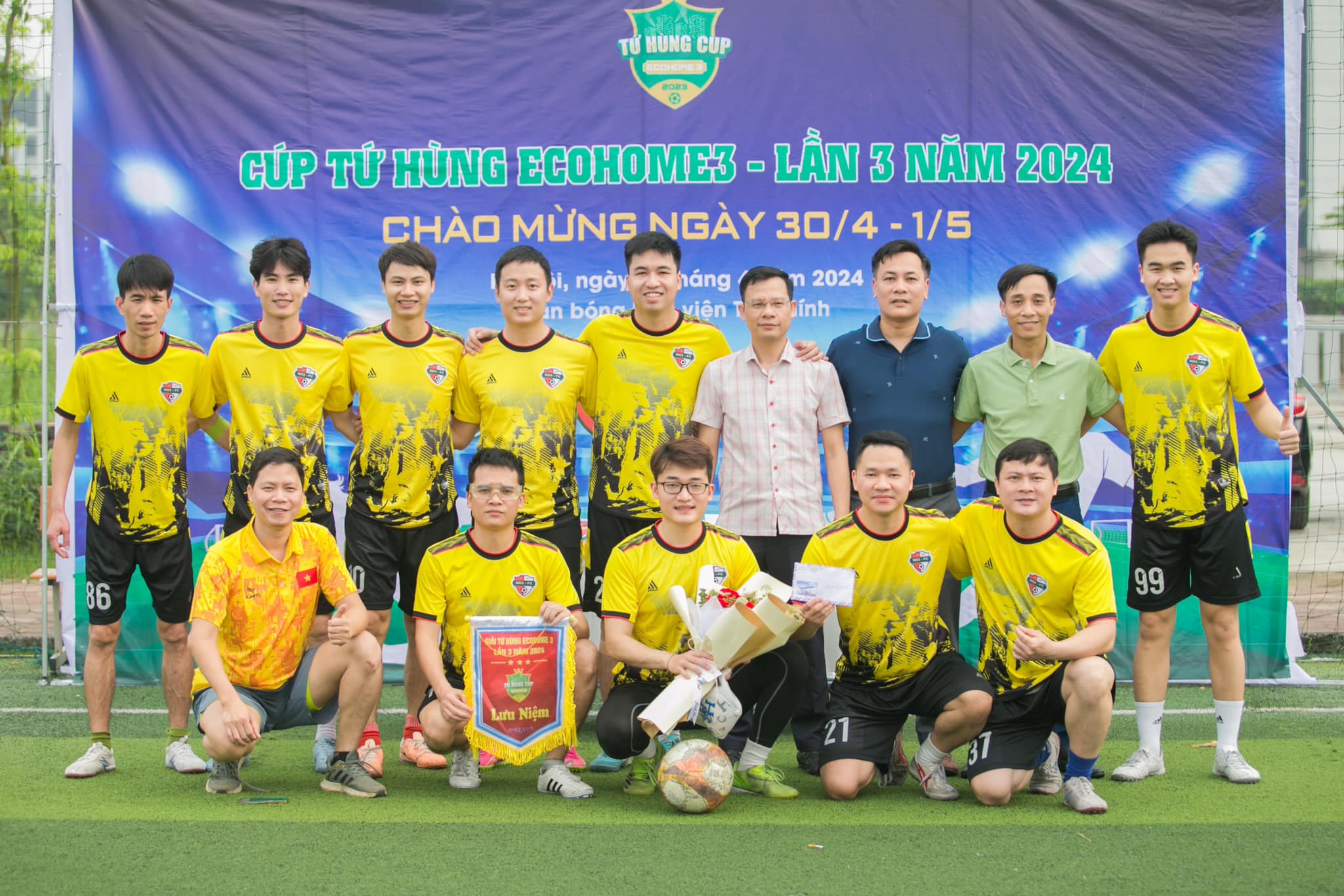 Hòa chung không khí chào mừng 30 tháng 4, Quốc tế lao động 1-5 và Kỷ niệm 70 năm chiến thắng điện biên phủ, sáng 21/4/2024, tại sân bóng đá Học viện Tài chính, đã diễn ra Giải bóng đá tranh Cup Tứ hùng 2023 gồm các đội bóng của các Tòa NO2,NO3,NO4,NO5 chung cư Ecohome 3. Tới tham dự và ủng hộ cho giải đấu có Ban Quản Trị, Ban Quản Lý nhà chung cư Ecohome 3 Thủ Đô cùng các cầu thủ và đông đảo cổ động viên của 4 đội bóng.