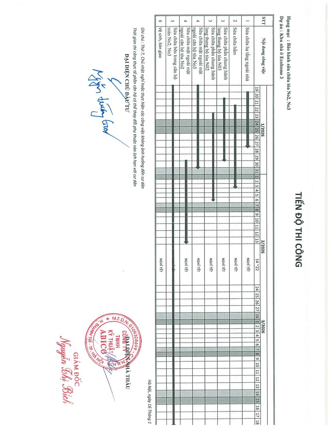 THÔNG BÁO KẾ HOẠCH THI CÔNG BẢO HÀNH BẢO TRÌ TẠI CHUNG CƯ ECOHOME 3 THỦ ĐÔ