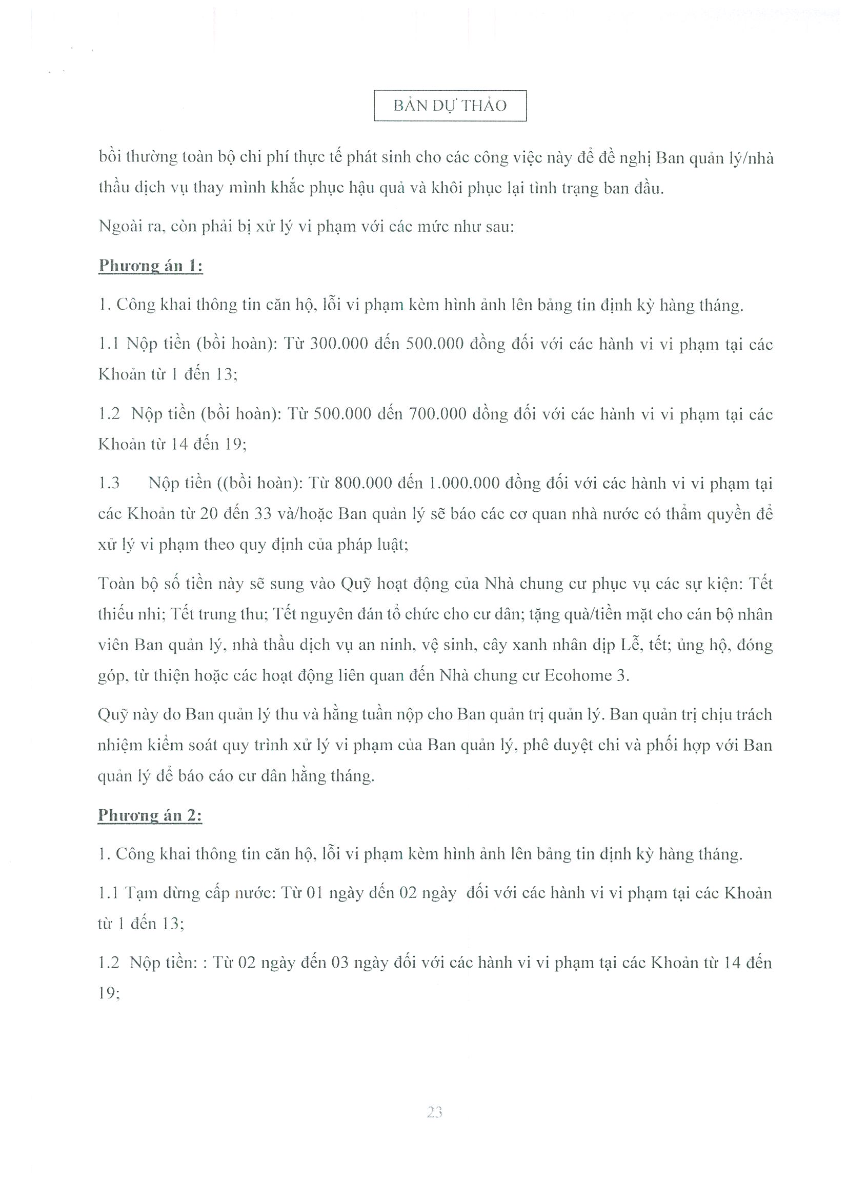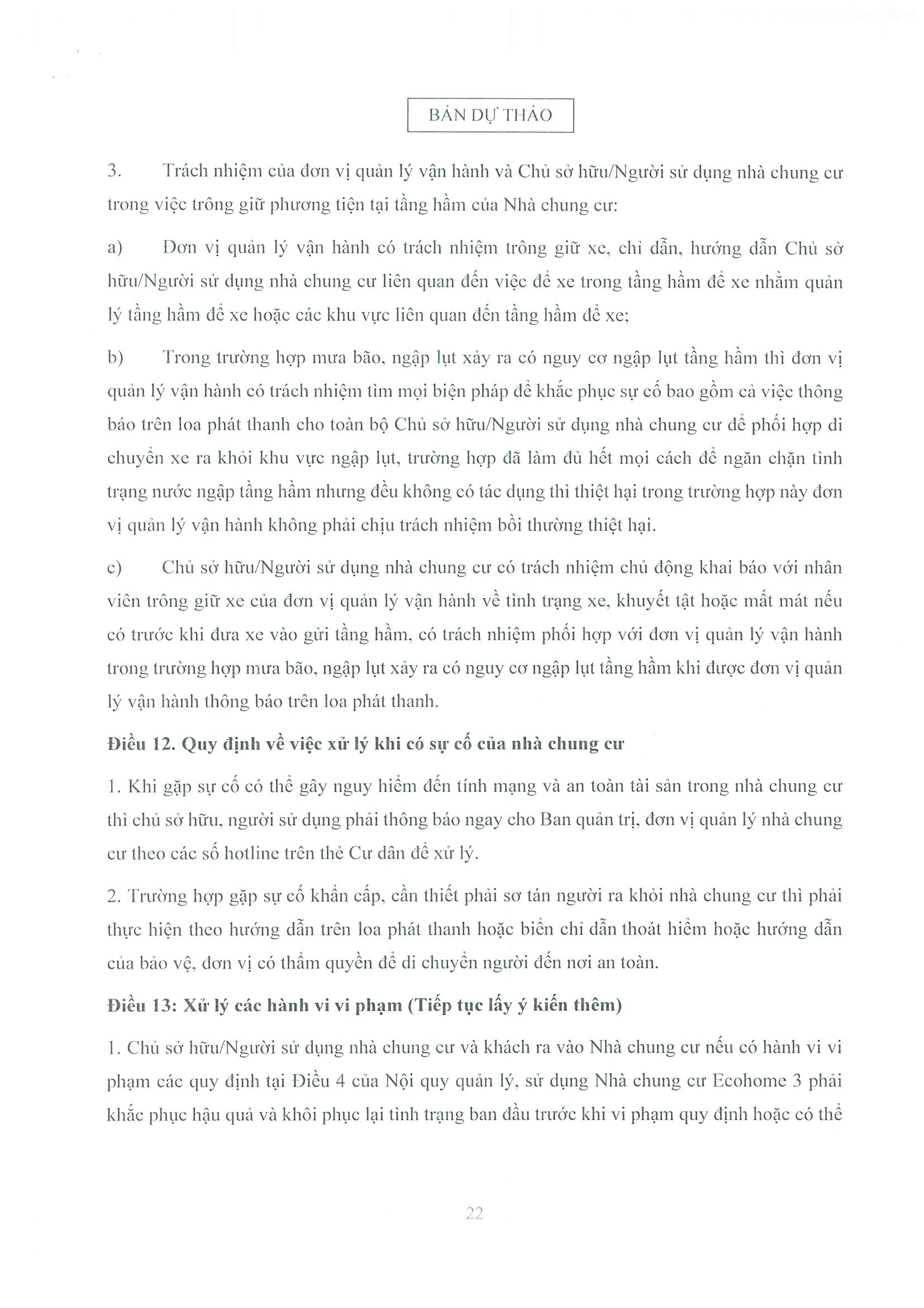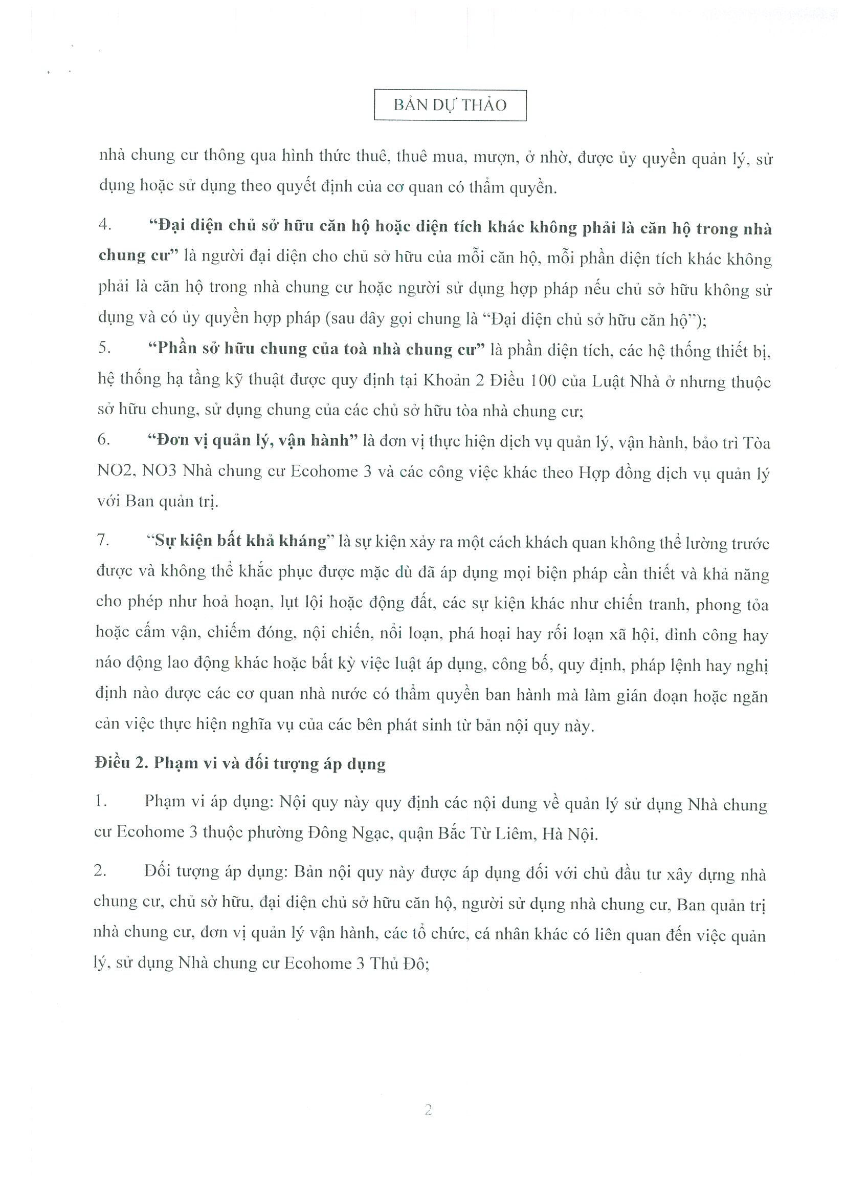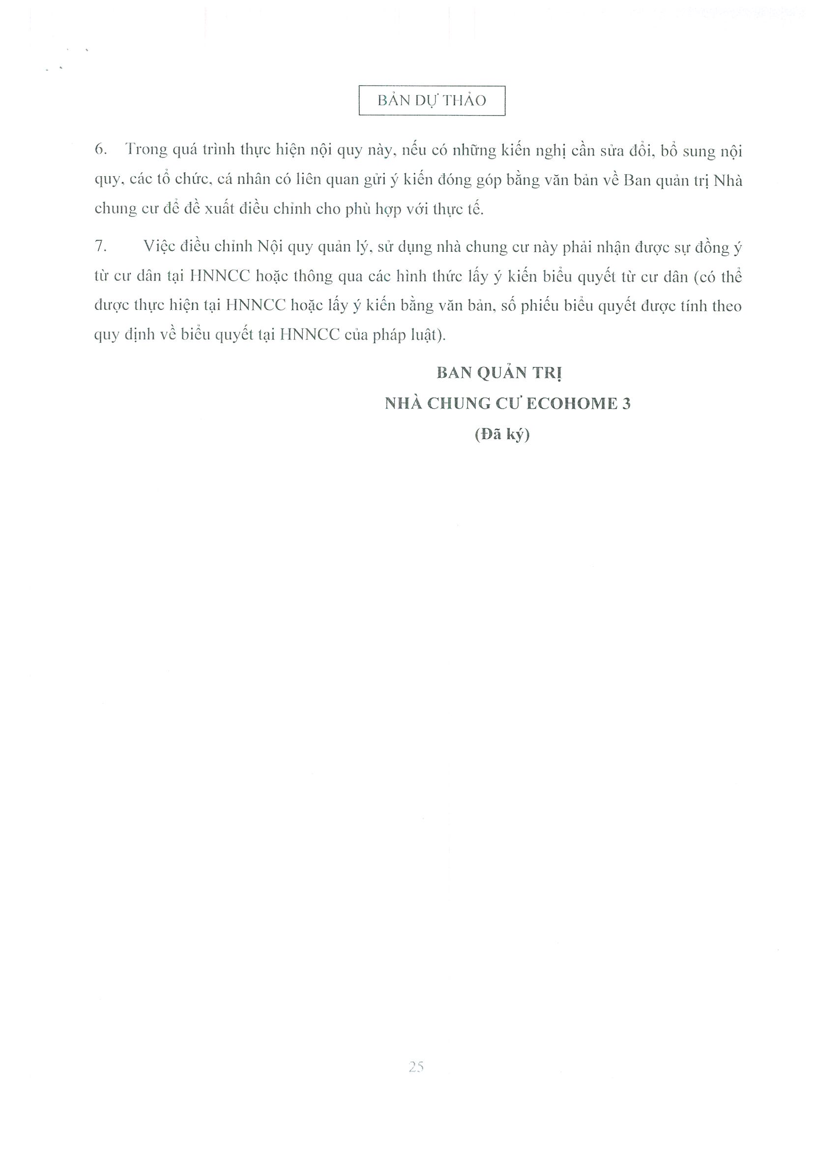 - Dự thảo Nội quy quản lý, sử dụng nhà chung cư Ecohome 3 Thủ Đô;