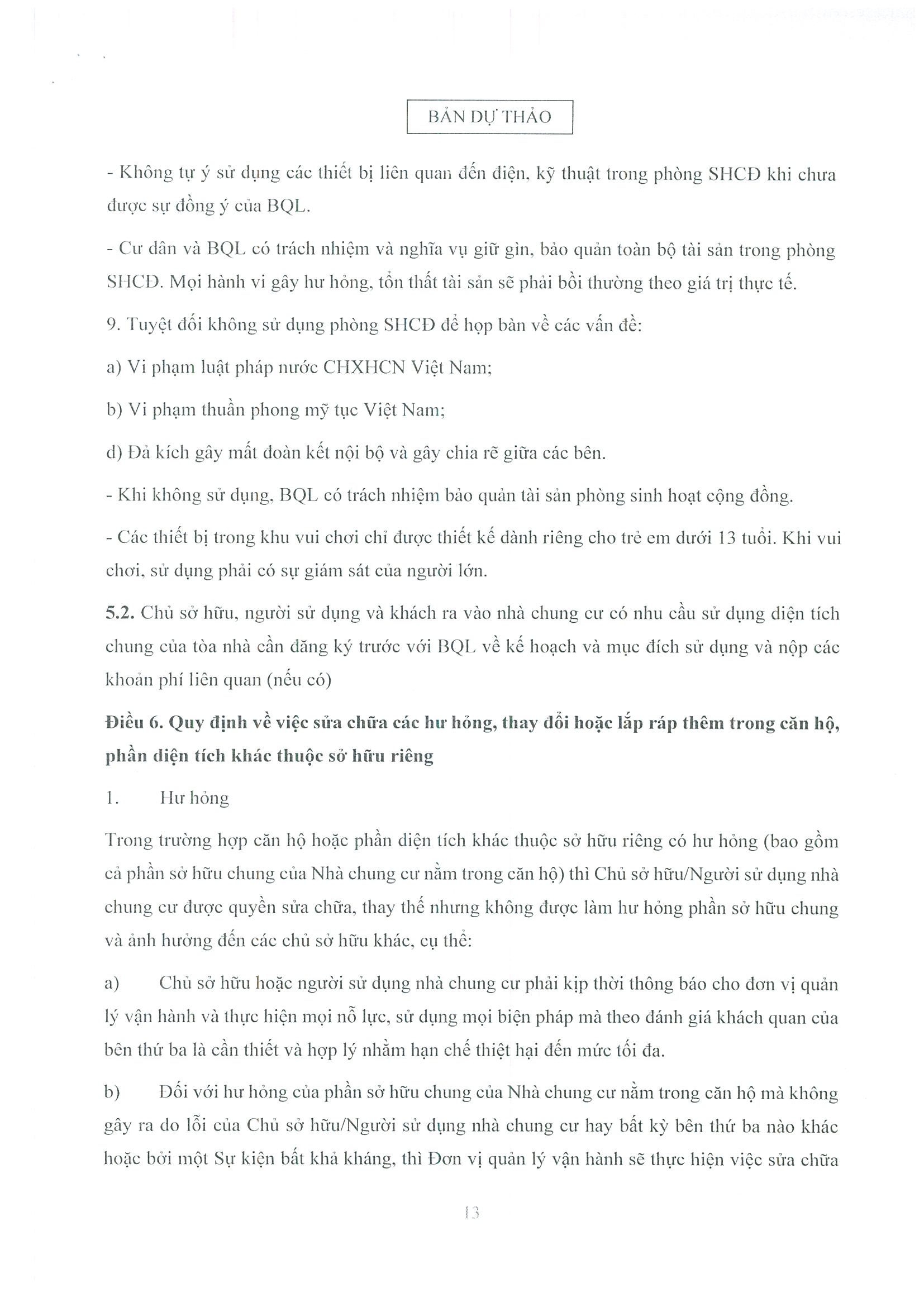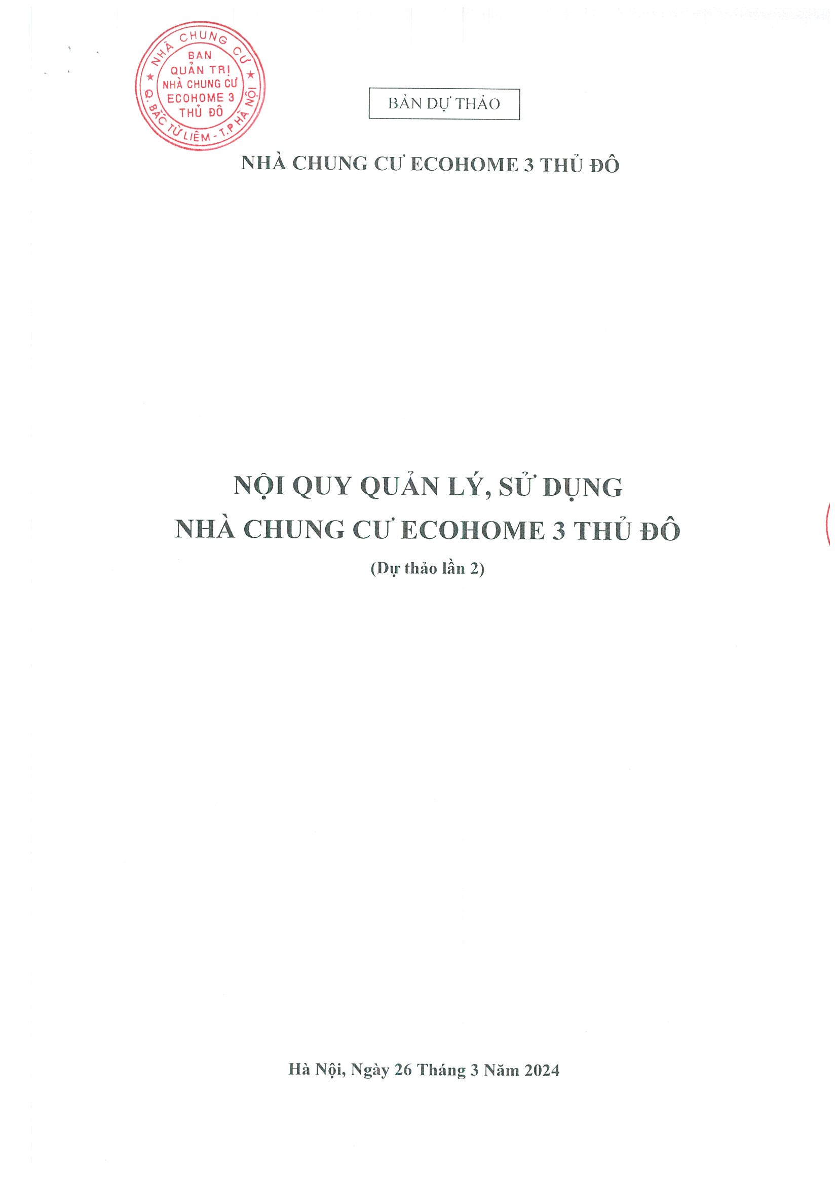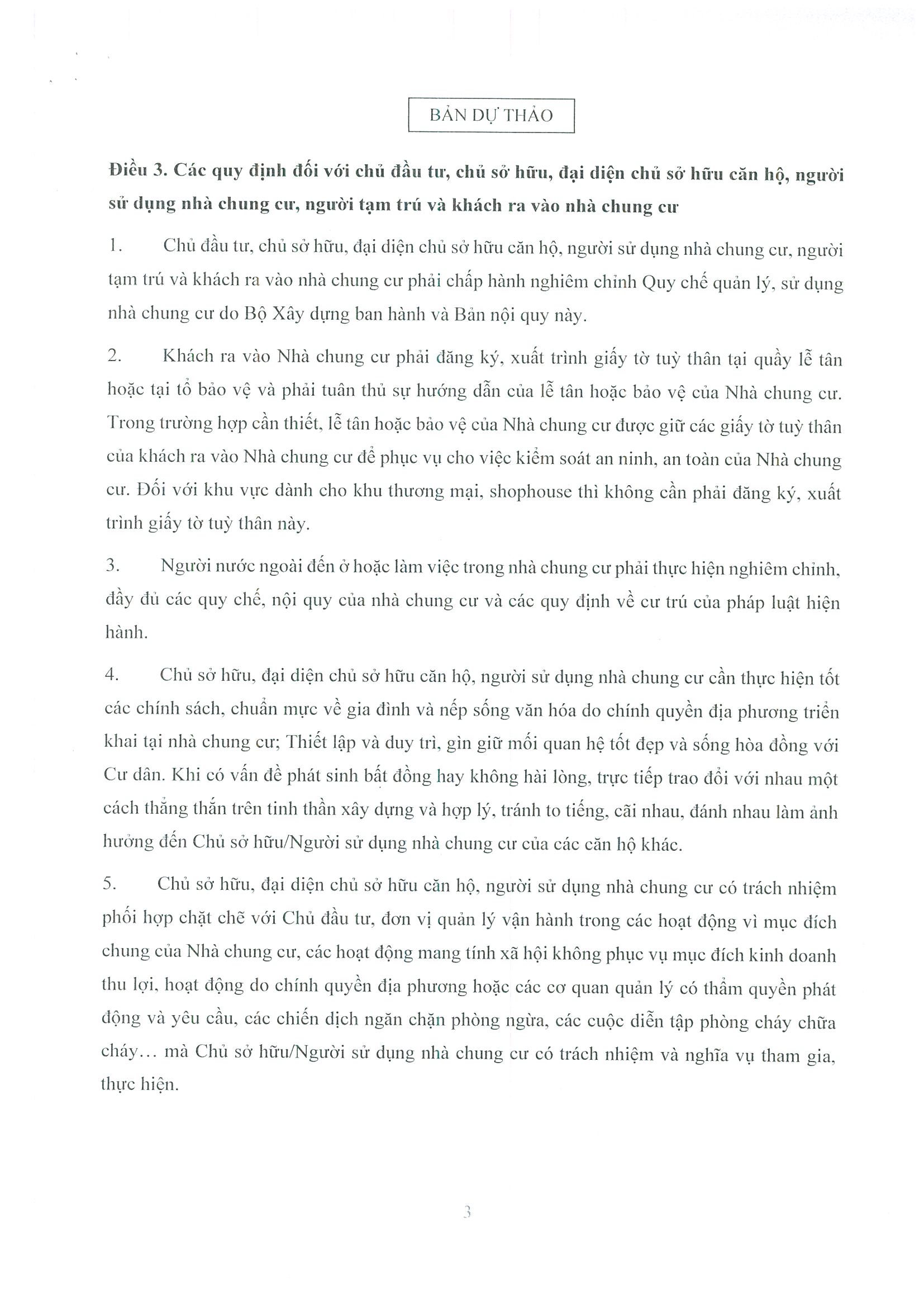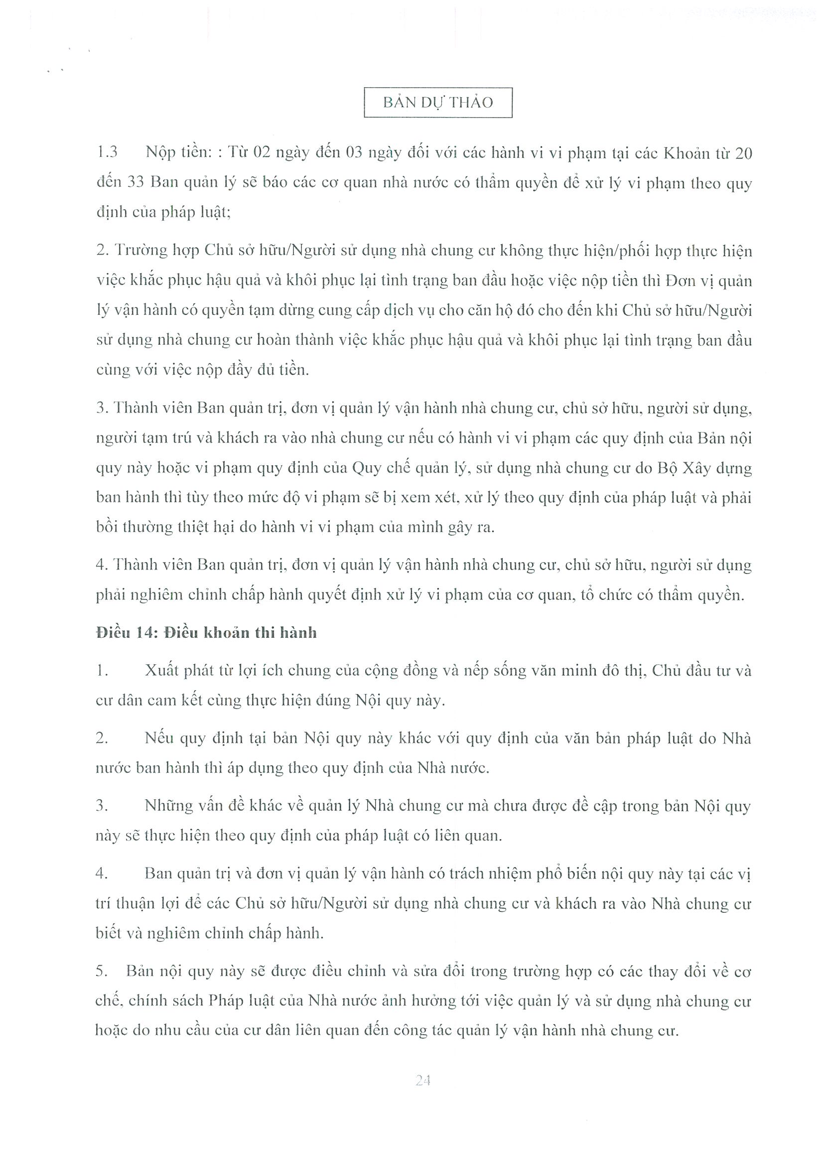 - Dự thảo Nội quy quản lý, sử dụng nhà chung cư Ecohome 3 Thủ Đô;