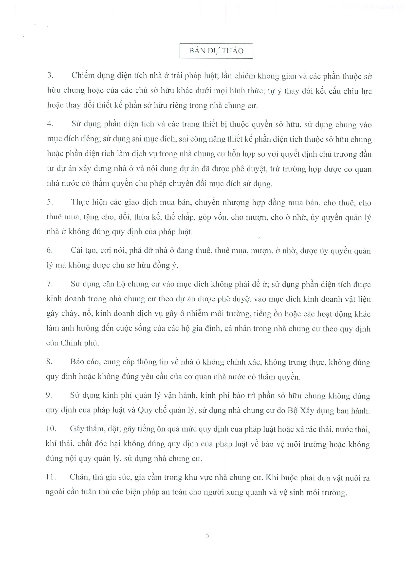 Điều 4. Các hành vi bị nghiêm cấm trong việc quản lý, sử dụng nhà chung cư