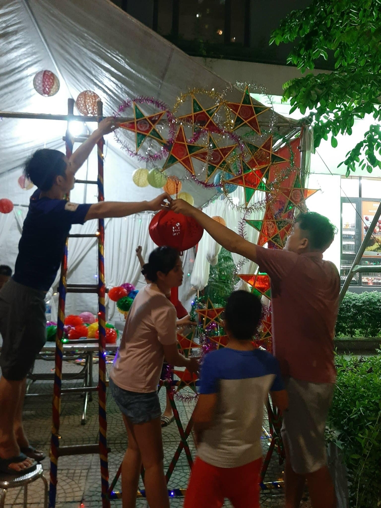 Tầng 29 và 30- N02 cũng xin góp vui một gam màu đoàn kết yêu thương đó. Mỗi một ngôi sao, một ánh đèn, một dây ruy băng…trang trí cho trại đều là có sự chăm chút, góp sức của từng thành viên, từ người lớn, đến mỗi em nhỏ của cả hai tầng!!! Xem ảnh là bà con biết ngay