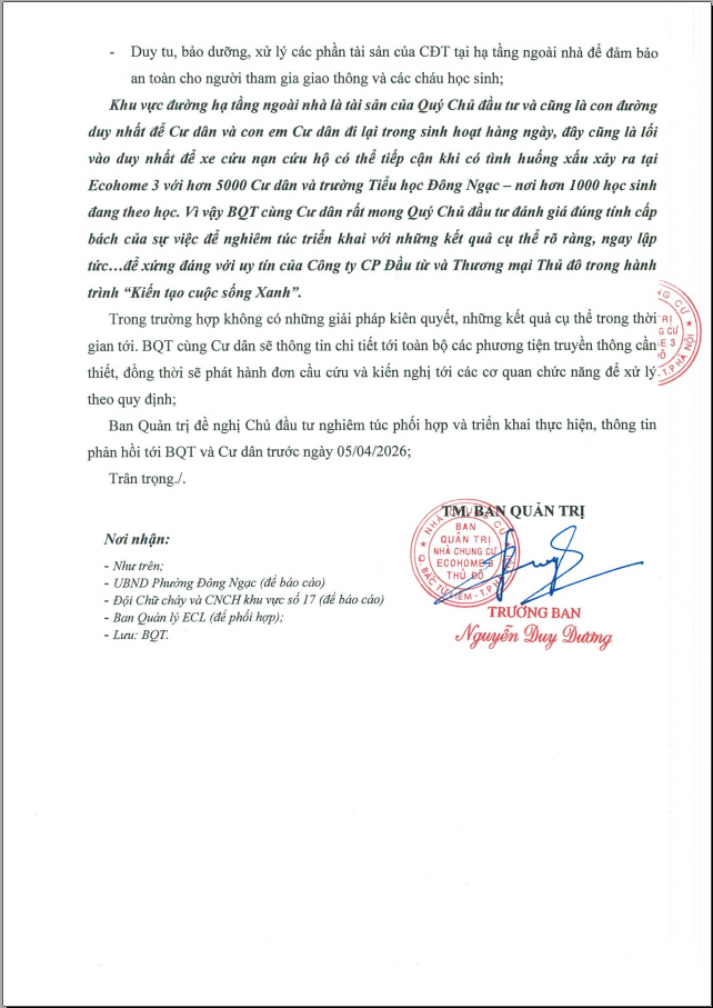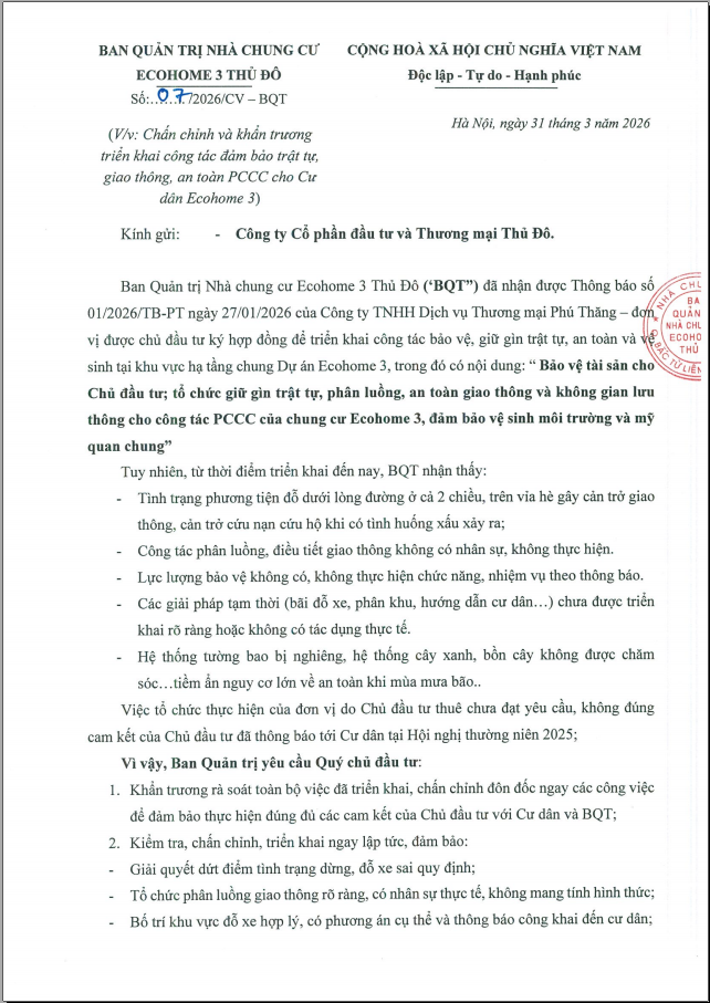 CV: vv chấn chỉnh và khẩn trương triển khai công tác đảm bảo trật tự, giao thông, an toàn PCCC cho Cư dân Ecohome 3 06/04/2026 BQT 0 Nhận xét